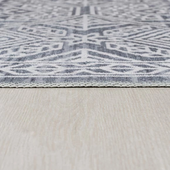 Introducing the Fold Cora Global Washable Rug, a unique, machine washable and foldable rug in a globally-inspired geometric design, paired with monochrome shades. This piece is a versatile option for versatile homes and lives, packed in its own easy to handle tote bag and a 100% polyester pile creates the perfect for sitting under furniture or in high-traffic areas. The Fold Cora Global Washable Rug is great to use in every room in the house, even kitchens and bathrooms because of its machine washable qualities. To wash at home simply pop in the washing machine at 30 degrees with no detergent, and then line dry or dry on a clothes maiden. Make sure to check machine drum size so you don’t overfill.